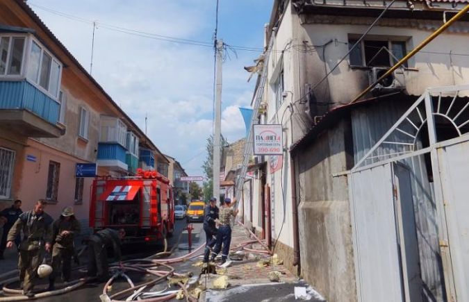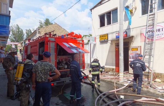 Информация о загорании поступила спасателям ориентировочно 13.40, а уже к 14:00 дом практически потушили. На месте пожара работали два пожарных расчета УГСЧС. Сильно пострадало помещение магазина и крыша в фасадной части дома. Перекрытия между вторым этажом и крышей прогорели.