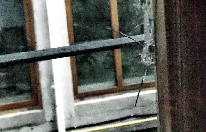 На днях херсонский общественный деятель Владимир Марус обнаружил в оконном стекле два отверстия, похожих на пулевые. Что характерно, предполагаемые выстрелы могли быть сделаны только из окон строящейся гостиницы, занимающей всё пространство в пяти метрах напротив. Так как двор закрыт и туда никто посторонний попасть не может.